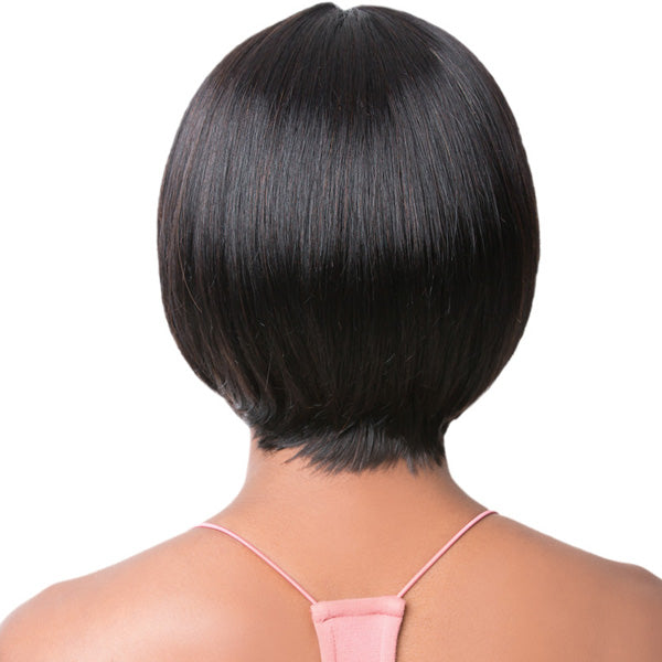 It's a Wig 100% Brazilian Human Hair Swiss Lace Front Wig HH WIDE T PART S LACE MIMI COLOR SHOWN ON MODEL: 1B MATERIAL: 100% Brazilian Human Hair TYPE: Lace Front Wig LENGTH: Short HEAT SAFE: Yes DESCRIPTION:
