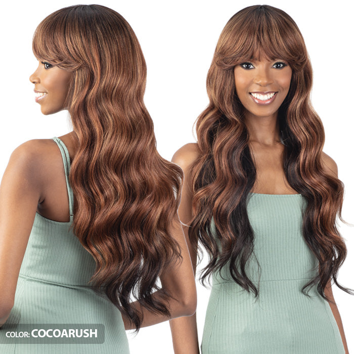 is a loose wave style with a natural bang that is made with a soft and light mesh cap that provides great ventilation