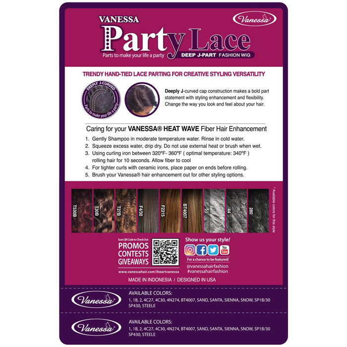 Vanessa Party Lace Deep J-Part Fashion Wig - MONDY